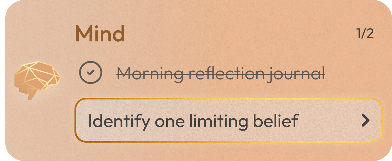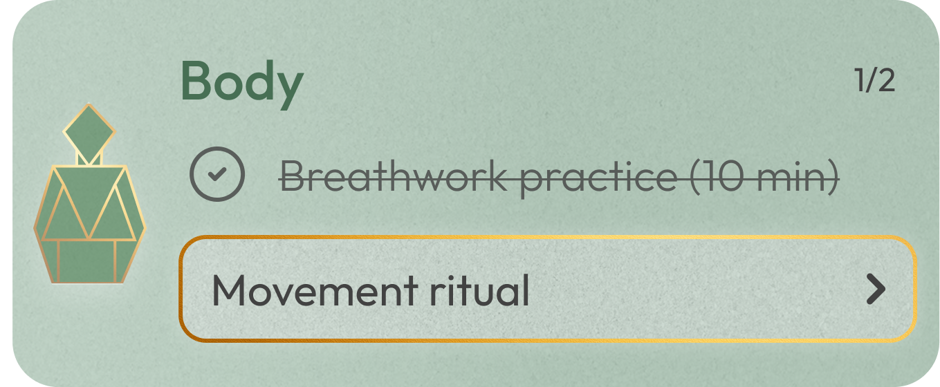 The user meets resistance, habits, and inner conflict — supported by structure, ritual, and reflection.