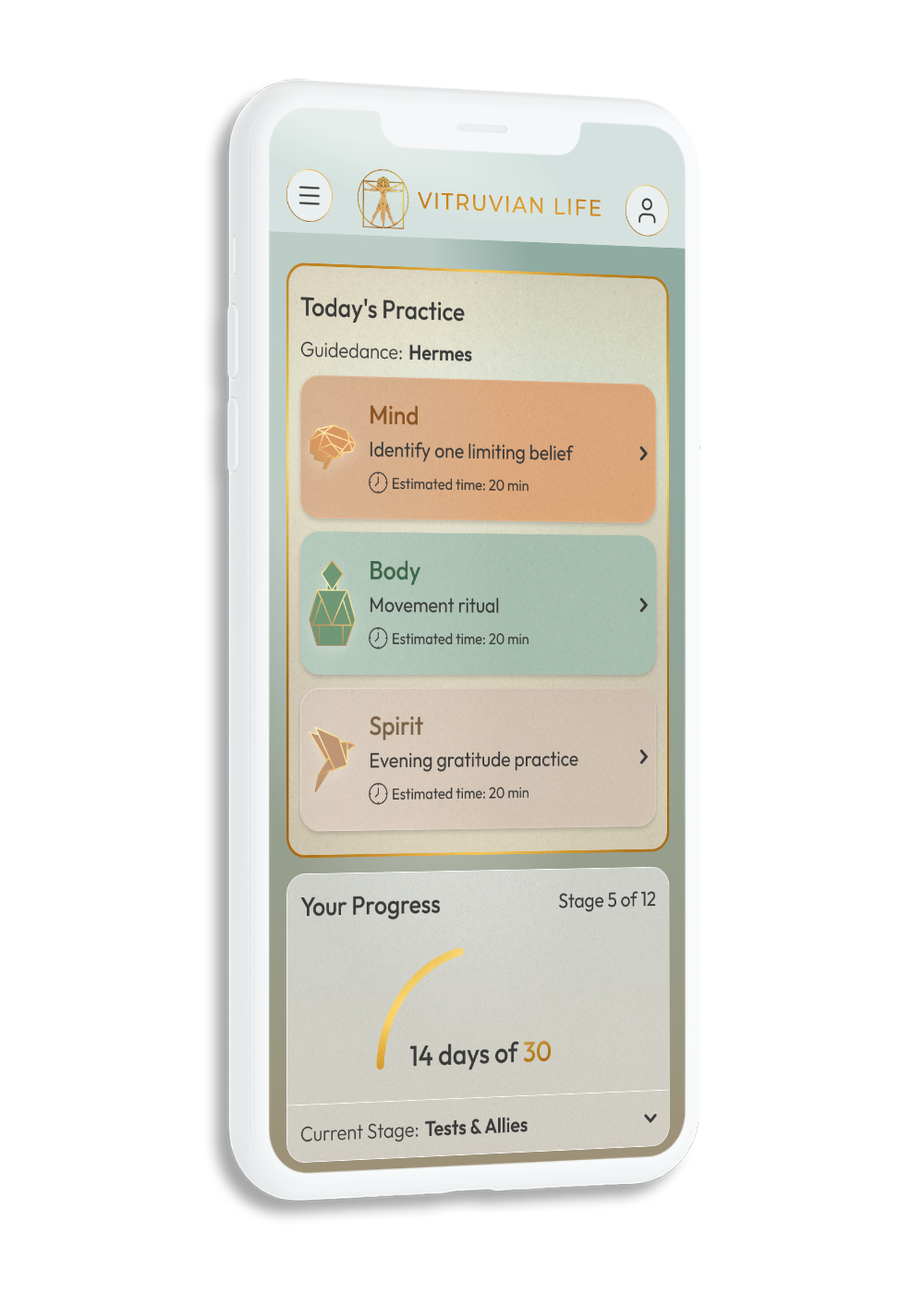 Vitruvian Life is a transformative coaching system for Mind, Body, and Spirit, inspired by the Hero’s Journey and guided by symbolic Greek mentors.