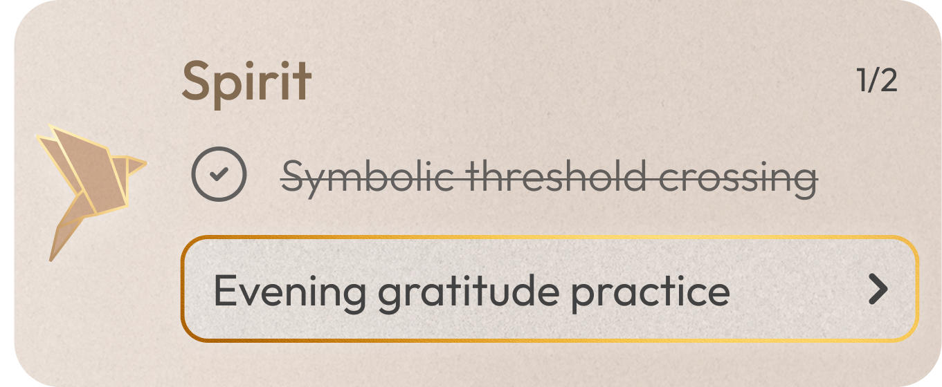 Each user is welcomed as a modern hero, called to cross thresholds of identity, habit, and belief.
